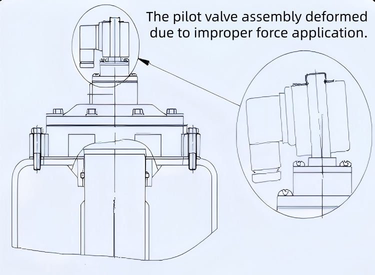 След монтажа са забранени заваръчни операции на въздушни резервоари, свързани фланци или продухващи тръби, за да се предотврати пръскане на заваръчен шев или повреда от висока температура на диафрагмите. Боравете внимателно по време на транспортиране или монтаж, за да предотвратите повреда от удар на пилотния възел на електромагнитния клапан, което може да деформира втулката на макарата, причинявайки задръстване на движещото се стебло и предотвратявайки работата на клапана.